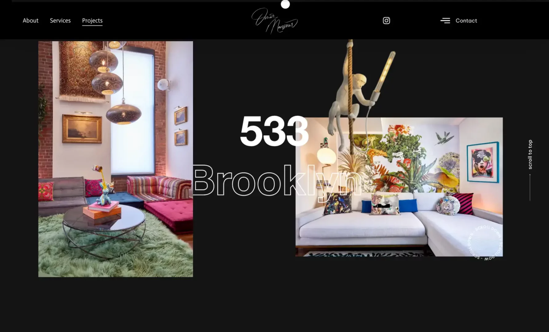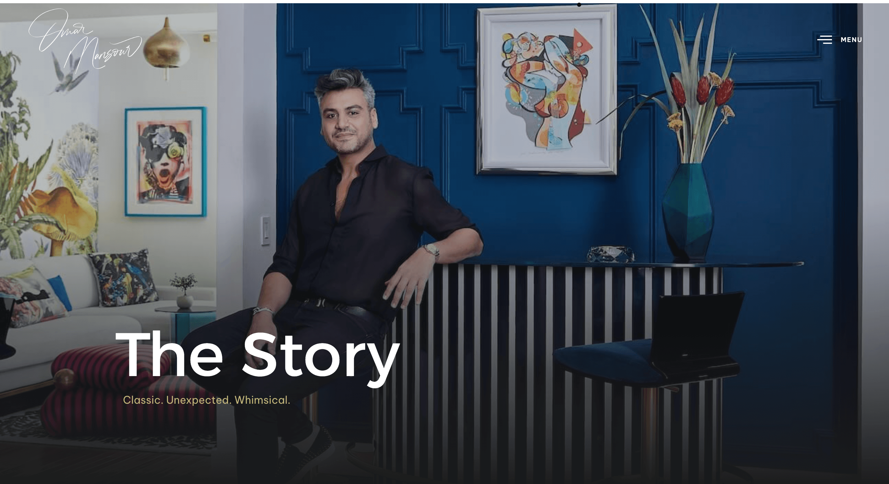 Omar's interior work is bold, maximalist, and visually dense—exposed brick meets tropical wallpaper, statement lighting commands attention. But he lacked a platform to showcase his talents to the world and needed a website that was both bold enough to match the caliber of his work, while minimalistic in it's overall aesthetic.